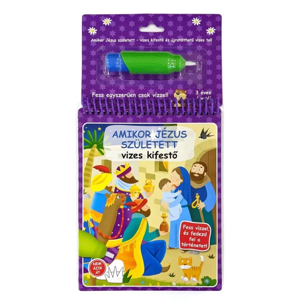 A vizes kifestő egy varázslatos színezőkönyv, melyben a gyerekek vizes ecsettel festve keltik életre a történet mozgalmas képeit. Miközben előtűnnek az újabb és újabb részletek, a meglepetés örömével ismerhetik meg Jézus születésének történetét.