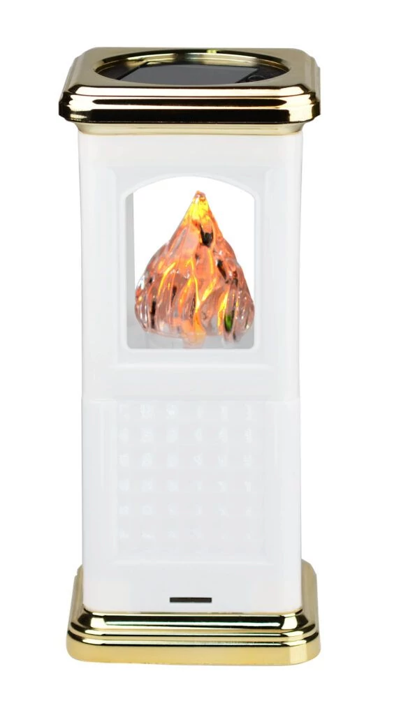 Modern temetői gyertya két energiaforrást használ: napenergiát és elemeket.