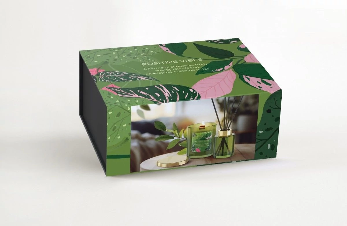 Az ajándékdoboz tartalma: illatgyertya 1db, diffúzor 1db
